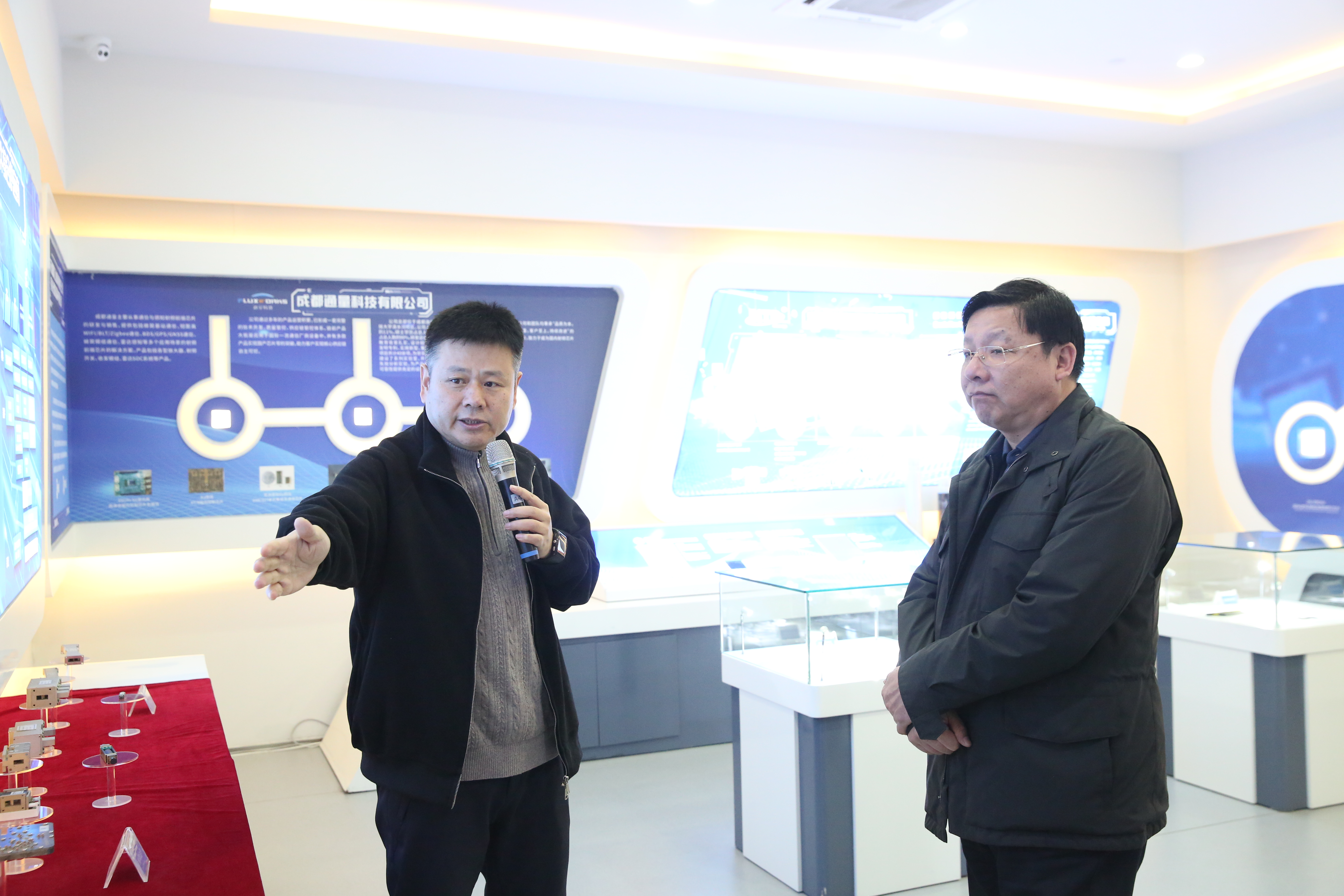 張華維一行先后參觀了天和防務(wù)文化展廳和產(chǎn)品展廳,周磊詳細介紹了公司生產(chǎn)經(jīng)營、技術(shù)研發(fā)、產(chǎn)業(yè)布局等情況,并重點匯報了公司在5G射頻、低空經(jīng)濟、應(yīng)急裝備、大數(shù)據(jù)和云脈健康等相關(guān)業(yè)務(wù)。在天和云脈產(chǎn)品展區(qū),王超介紹了天和云脈健康監(jiān)測腕表的各項功能與特性,代表團成員在實際體驗后表示出濃厚興趣。