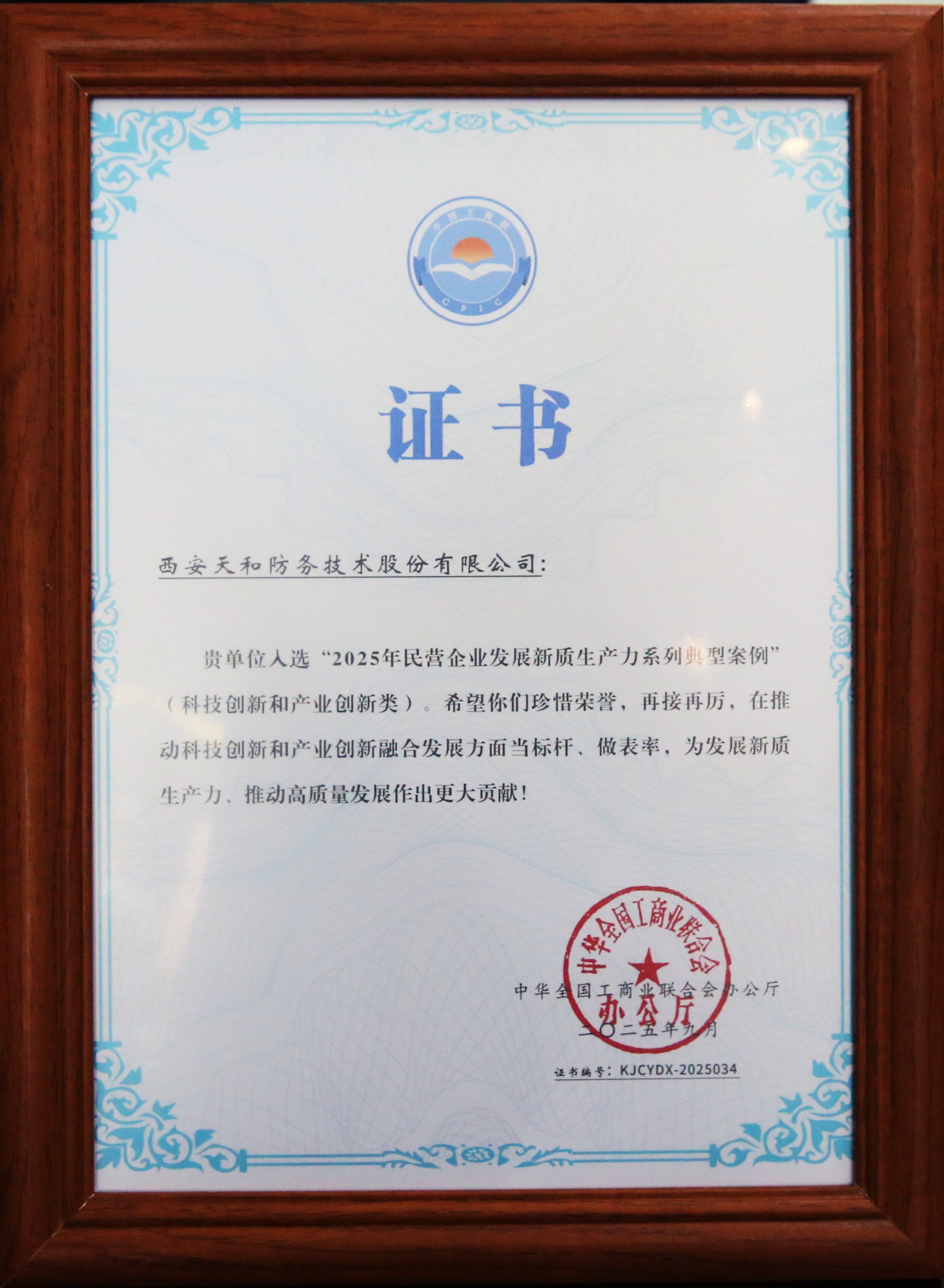 天和防務(wù)入選“2025年民營企業(yè)發(fā)展新質(zhì)生產(chǎn)力系列典型案例”